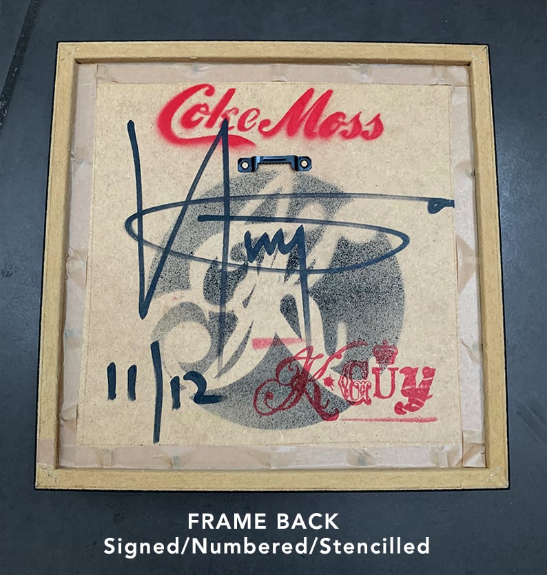 DESCRIPTION: 2 layer construction with the face screened on the inside of the acrylic glass with hand spray painted gold hair and the Coke branding set to the back of the box frame