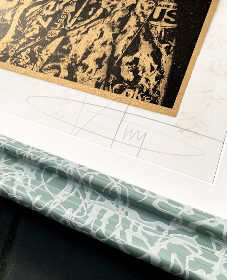 FRAME: Hand paint dripped ornate frame with UV glass and off-white mount - Signed/numbered/stencilled on REVERSE