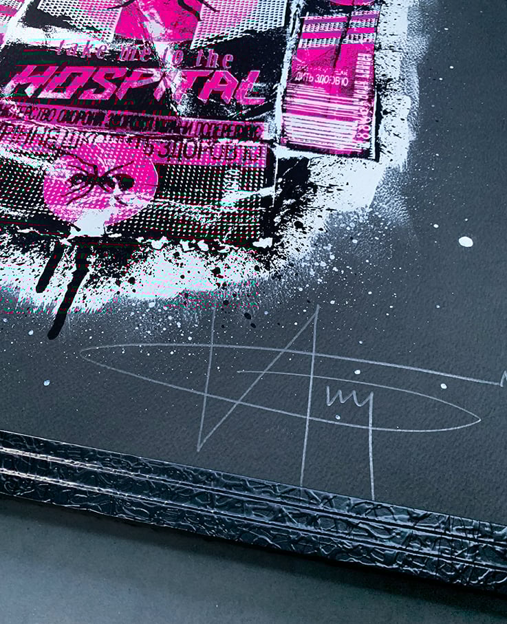 DESCRIPTION: 3 colour screen print on 300gsm black art paper - signed/numbered/blind stamped by K•GUY